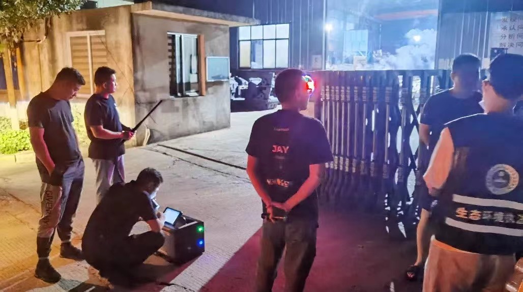 當(dāng)晚22時左右,當(dāng)工業(yè)園區(qū)企業(yè)全面進入投產(chǎn)狀態(tài)時,執(zhí)法隊伍攜帶便攜設(shè)備出發(fā)。在前往工業(yè)園區(qū)的過程中,便攜式設(shè)備已在路上完成了預(yù)熱準(zhǔn)備工作。到達(dá)現(xiàn)場后進行設(shè)備的標(biāo)定校準(zhǔn)后,立即對預(yù)先確認(rèn)好的廠區(qū)周邊點位、某重點企業(yè)廠區(qū)門口、車間門口等5個點位進行連續(xù)測量。每個點位檢測5-7組有效數(shù)據(jù),檢測結(jié)果通過儀器自帶的打印機進行現(xiàn)場打印。在整個監(jiān)測過程中,設(shè)備運行狀態(tài)穩(wěn)定,多點位連續(xù)監(jiān)測,過程連貫順暢,全程用時1小時左右,高效順利的完成了本次抽查任務(wù)。